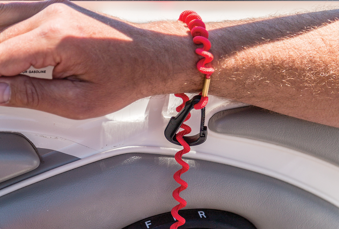 An engine cut-off switch (also known as an engine cut-off switch link, engine cut-off device, kill switch, man overboard device) cuts power to the engine by sensing when the captain, or even passengers, goes overboard. Lanyard and wireless devices are available. A lanyard may attach to the boat operator from the powerboat’s installed engine cut-off switch. Wireless device options may resemble a wristband or key fob. Some wireless devices may sound an alarm, track the boat’s location, and even call search and rescue assets in emergency situations.